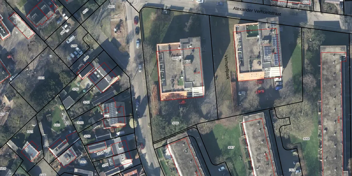 Het perceel waarop Verhuellpark 31 staat heeft een oppervlakte van 2625 m². Dit is een zeer groot perceel. De perceeloppervlakte wordt geregistreerd door het Kadaster. Gedetailleerde informatie over de maten van dit perceel kunt u vinden in het rapport Kadastrale kaart met maatvoering van Verhuellpark 31.