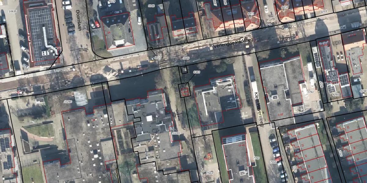 Het perceel waarop Verlengde Parkweg 47-A staat heeft een oppervlakte van 42 m². Dit is een klein perceel. De perceeloppervlakte wordt geregistreerd door het Kadaster. Gedetailleerde informatie over de maten van dit perceel kunt u vinden in het rapport Kadastrale kaart met maatvoering van Verlengde Parkweg 47-A.