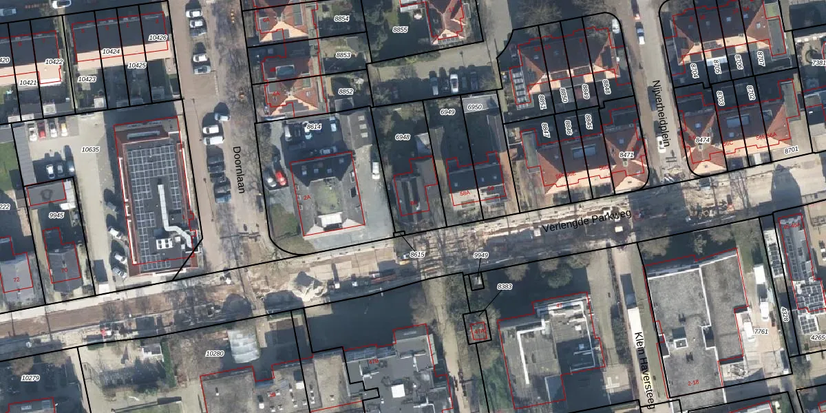 Het perceel waarop Verlengde Parkweg 60 staat heeft een oppervlakte van 410 m². Dit is een groot perceel. De perceeloppervlakte wordt geregistreerd door het Kadaster. Gedetailleerde informatie over de maten van dit perceel kunt u vinden in het rapport Kadastrale kaart met maatvoering van Verlengde Parkweg 60.