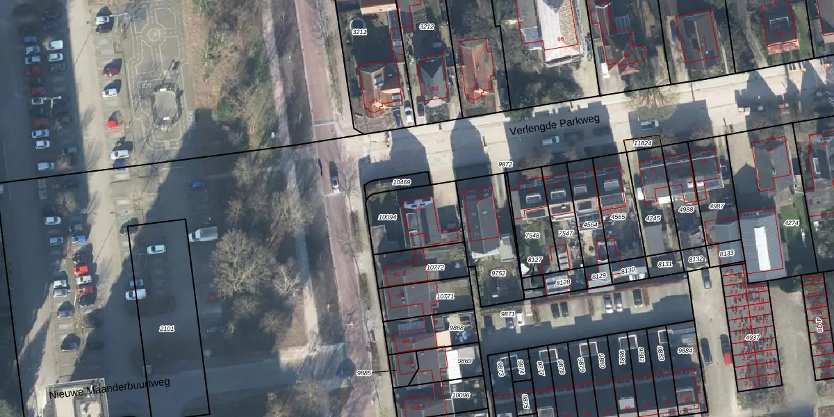 Het perceel waarop Verlengde Parkweg 85 staat heeft een oppervlakte van 325 m². Dit is een groot perceel. De perceeloppervlakte wordt geregistreerd door het Kadaster. Gedetailleerde informatie over de maten van dit perceel kunt u vinden in het rapport Kadastrale kaart met maatvoering van Verlengde Parkweg 85.