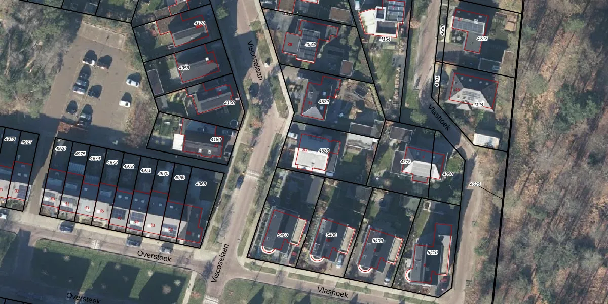 Het perceel waarop Viscoselaan 33 staat heeft een oppervlakte van 477 m². Dit is een groot perceel. De perceeloppervlakte wordt geregistreerd door het Kadaster. Gedetailleerde informatie over de maten van dit perceel kunt u vinden in het rapport Kadastrale kaart met maatvoering van Viscoselaan 33.