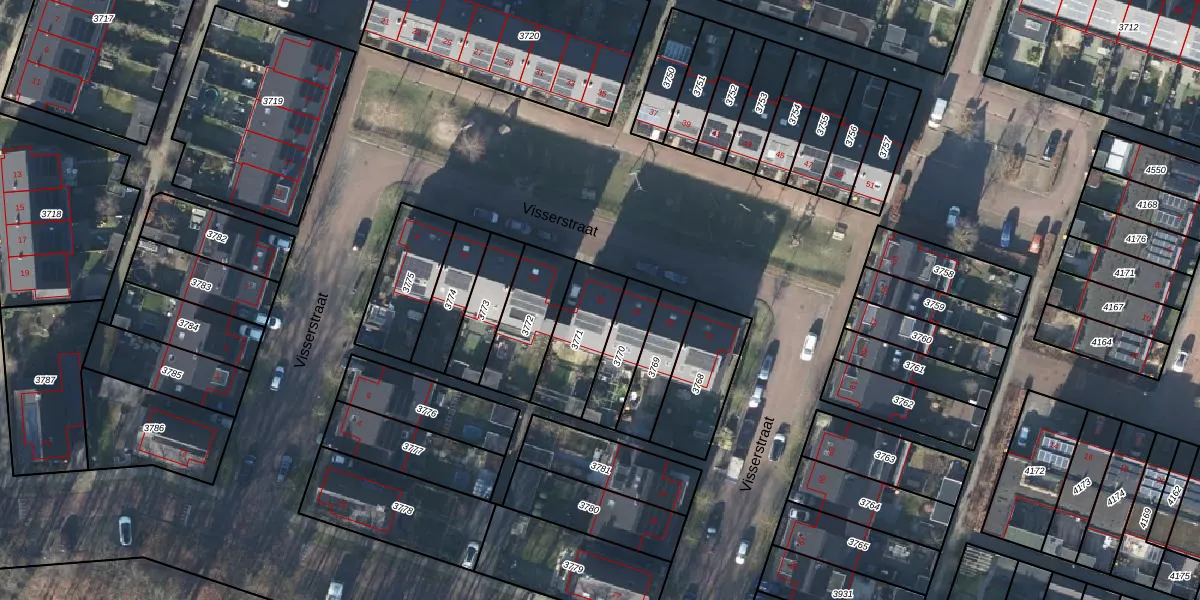 Visserstraat 16 is gelegen op kadastraal perceel EDE01C3771. Deze kadastrale aanduiding is uniek en wordt gebruikt door het Kadaster om eigendomsrechten en andere zakelijke rechten vast te leggen. Het perceel maakt onderdeel uit van de kadastrale gemeente Ede.