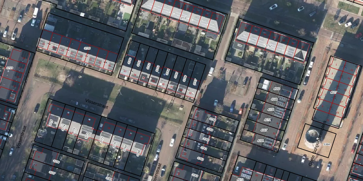 Het perceel waarop Visserstraat 49 staat heeft een oppervlakte van 119 m². Dit is een middelgroot perceel. De perceeloppervlakte wordt geregistreerd door het Kadaster. Gedetailleerde informatie over de maten van dit perceel kunt u vinden in het rapport Kadastrale kaart met maatvoering van Visserstraat 49.