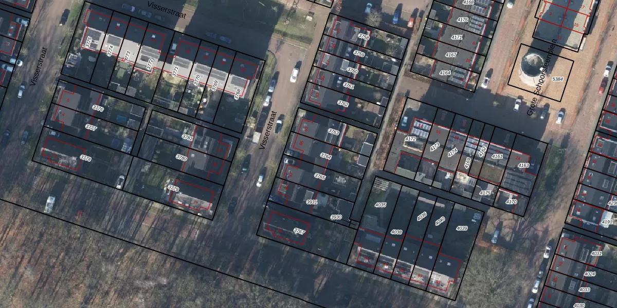 Het perceel waarop Visserstraat 65 staat heeft een oppervlakte van 211 m². Dit is een middelgroot perceel. De perceeloppervlakte wordt geregistreerd door het Kadaster. Gedetailleerde informatie over de maten van dit perceel kunt u vinden in het rapport Kadastrale kaart met maatvoering van Visserstraat 65.