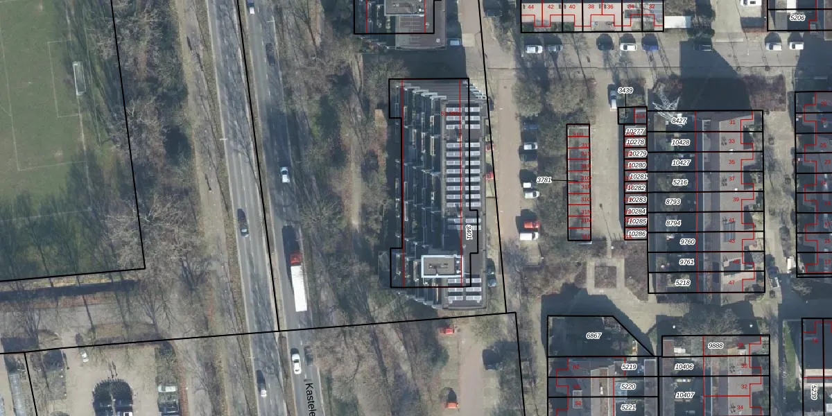 Het adres is gelegen op perceel 3401 in de sectie F en de kadastrale gemeente Ede. De kadastrale aanduiding is aldus EDE01-F-3401. De gemiddelde perceelgrootte in Ede is 2764,86 m². Dit perceel is kleiner: de perceeloppervlakte bedraagt 885 m². Het grootste perceel in de kadastrale gemeente is 2,10 km². Het kleinste perceel heeft een oppervlakte van 0 m². Op het perceel zijn 28 adressen aanwezig. In de Basisregistratie Kadaster (BRK) werden de grenzen van het perceel geregistreerd op 22-01-1998.