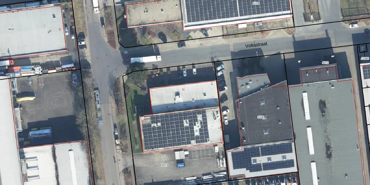 Het perceel waarop Voltastraat 11 staat heeft een oppervlakte van 3245 m². Dit is een zeer groot perceel. De perceeloppervlakte wordt geregistreerd door het Kadaster. Gedetailleerde informatie over de maten van dit perceel kunt u vinden in het rapport Kadastrale kaart met maatvoering van Voltastraat 11.