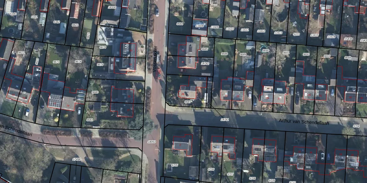 Vossenakker 28 is gelegen op kadastraal perceel EDE01K9687. Deze kadastrale aanduiding is uniek en wordt gebruikt door het Kadaster om eigendomsrechten en andere zakelijke rechten vast te leggen. Het perceel maakt onderdeel uit van de kadastrale gemeente Ede.