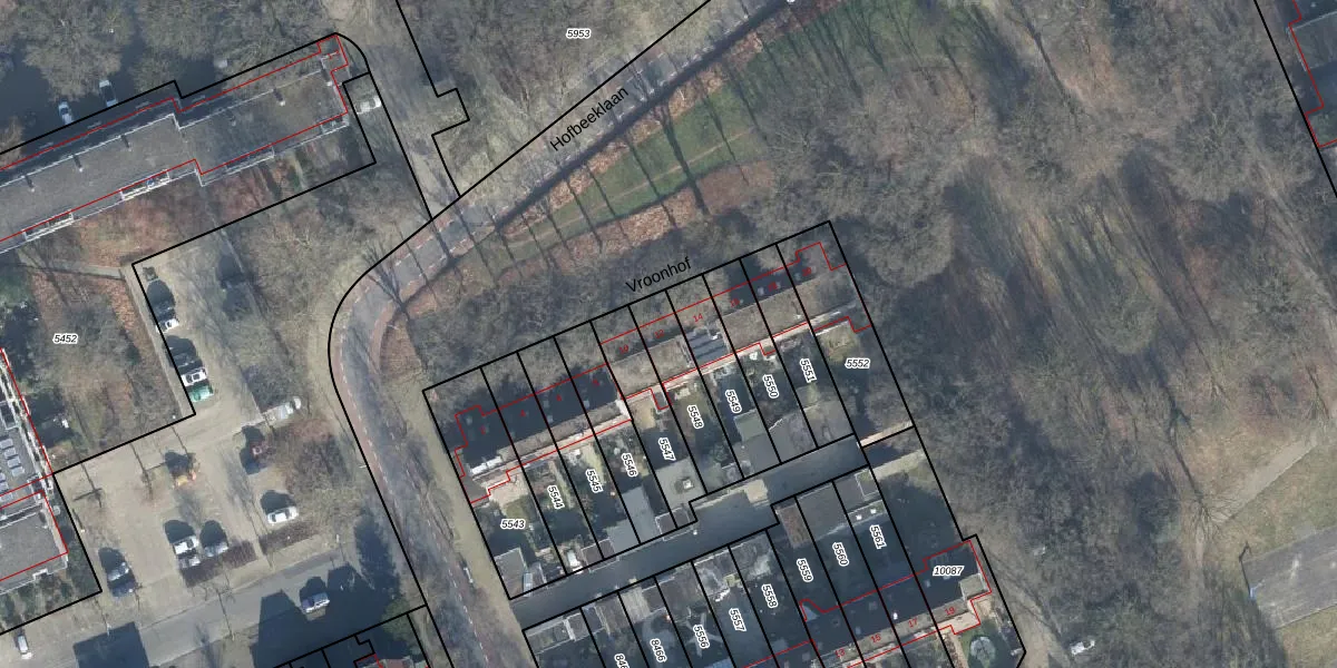 Het perceel waarop Vroonhof 12 staat heeft een oppervlakte van 185 m². Dit is een middelgroot perceel. De perceeloppervlakte wordt geregistreerd door het Kadaster. Gedetailleerde informatie over de maten van dit perceel kunt u vinden in het rapport Kadastrale kaart met maatvoering van Vroonhof 12.