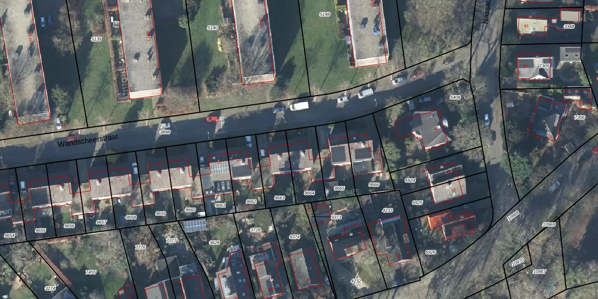 Wandscheerstraat 9 is gelegen op kadastraal perceel EDE01D9664. Deze kadastrale aanduiding is uniek en wordt gebruikt door het Kadaster om eigendomsrechten en andere zakelijke rechten vast te leggen. Het perceel maakt onderdeel uit van de kadastrale gemeente Ede.