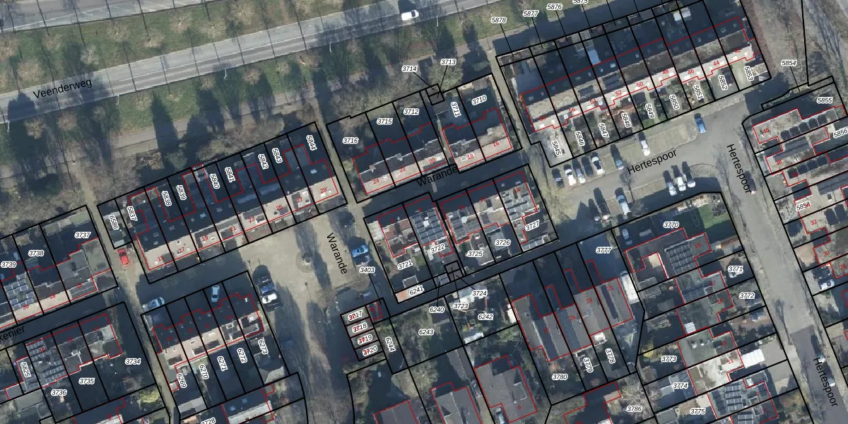 Gebruik de zoekbalk of klik op een perceel voor informatie over de adressen binnen dit perceel.