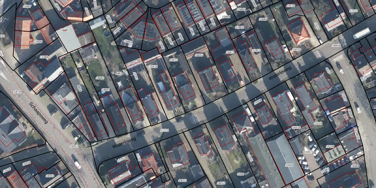 Het perceel waarop Waterloweg 56 staat heeft een oppervlakte van 395 m². Dit is een groot perceel. De perceeloppervlakte wordt geregistreerd door het Kadaster. Gedetailleerde informatie over de maten van dit perceel kunt u vinden in het rapport Kadastrale kaart met maatvoering van Waterloweg 56.