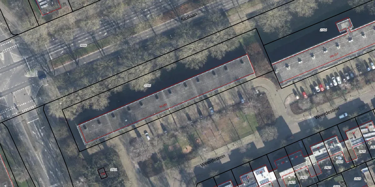 Het perceel waarop Weerdestein 139 staat heeft een oppervlakte van 2748 m². Dit is een zeer groot perceel. De perceeloppervlakte wordt geregistreerd door het Kadaster. Gedetailleerde informatie over de maten van dit perceel kunt u vinden in het rapport Kadastrale kaart met maatvoering van Weerdestein 139.