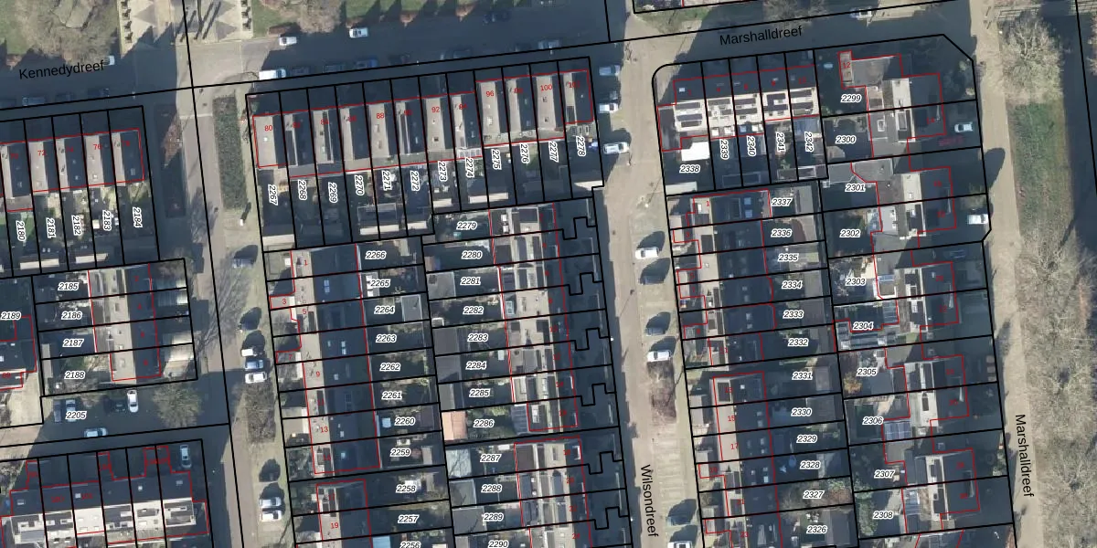 Het perceel waarop Wilsondreef 6 staat heeft een oppervlakte van 164 m². Dit is een middelgroot perceel. De perceeloppervlakte wordt geregistreerd door het Kadaster. Gedetailleerde informatie over de maten van dit perceel kunt u vinden in het rapport Kadastrale kaart met maatvoering van Wilsondreef 6.