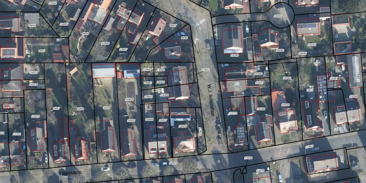 Het perceel waarop W.J. Bitterstraat 1 staat heeft een oppervlakte van 275 m². Dit is een middelgroot perceel. De perceeloppervlakte wordt geregistreerd door het Kadaster. Gedetailleerde informatie over de maten van dit perceel kunt u vinden in het rapport Kadastrale kaart met maatvoering van W.J. Bitterstraat 1.