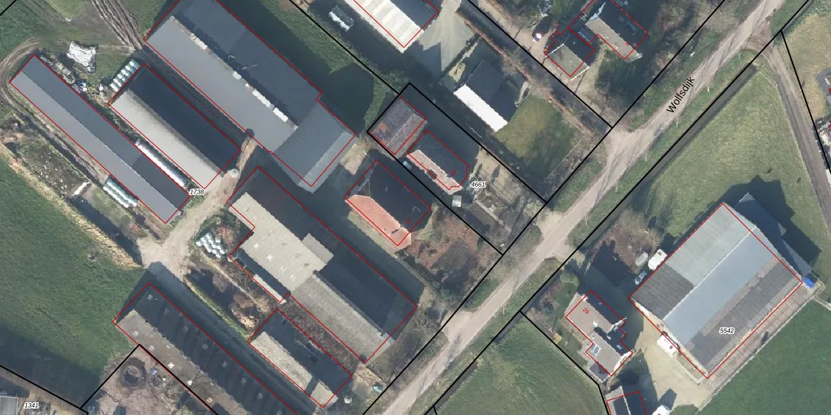 Het perceel waarop Wolfsdijk 12 staat heeft een oppervlakte van 1,2 ha. Dit is een zeer groot perceel. De perceeloppervlakte wordt geregistreerd door het Kadaster. Gedetailleerde informatie over de maten van dit perceel kunt u vinden in het rapport Kadastrale kaart met maatvoering van Wolfsdijk 12.