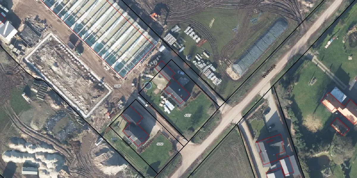 Het perceel waarop Wolfsdijk 2 staat heeft een oppervlakte van 1000 m². Dit is een zeer groot perceel. De perceeloppervlakte wordt geregistreerd door het Kadaster. Gedetailleerde informatie over de maten van dit perceel kunt u vinden in het rapport Kadastrale kaart met maatvoering van Wolfsdijk 2.