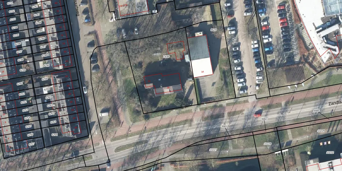 Zandlaan 36 is gelegen op kadastraal perceel EDE01D7436. Deze kadastrale aanduiding is uniek en wordt gebruikt door het Kadaster om eigendomsrechten en andere zakelijke rechten vast te leggen. Het perceel maakt onderdeel uit van de kadastrale gemeente Ede.