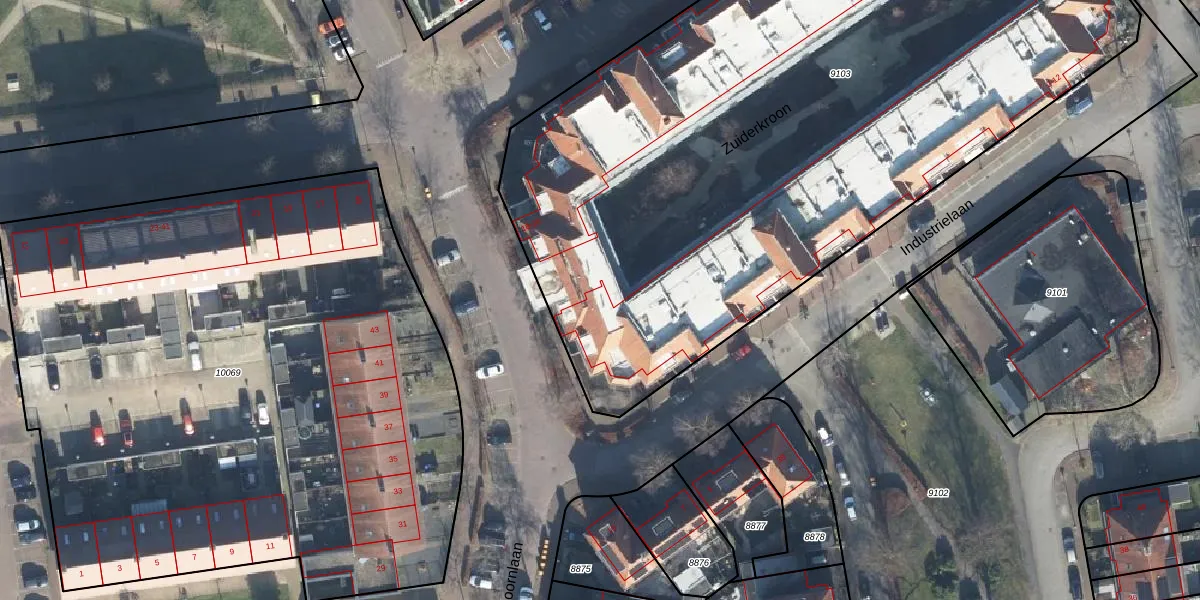 Het perceel waarop Zuiderkroon 32 staat heeft een oppervlakte van 5142 m². Dit is een zeer groot perceel. De perceeloppervlakte wordt geregistreerd door het Kadaster. Gedetailleerde informatie over de maten van dit perceel kunt u vinden in het rapport Kadastrale kaart met maatvoering van Zuiderkroon 32.