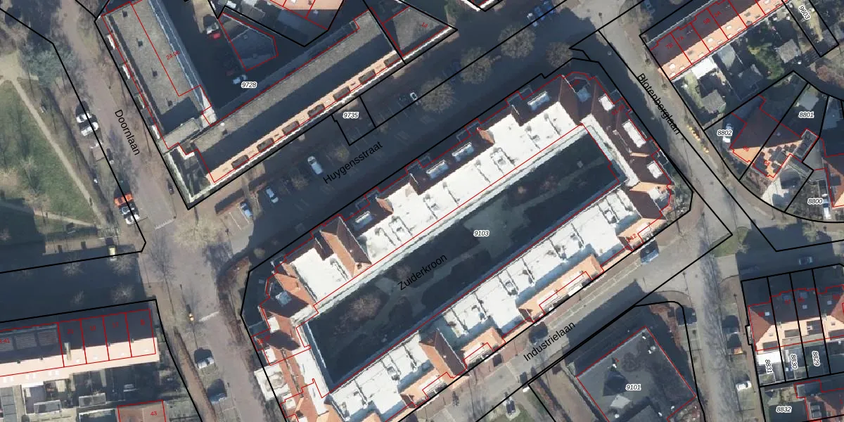 Het perceel waarop Zuiderkroon 38 staat heeft een oppervlakte van 5142 m². Dit is een zeer groot perceel. De perceeloppervlakte wordt geregistreerd door het Kadaster. Gedetailleerde informatie over de maten van dit perceel kunt u vinden in het rapport Kadastrale kaart met maatvoering van Zuiderkroon 38.