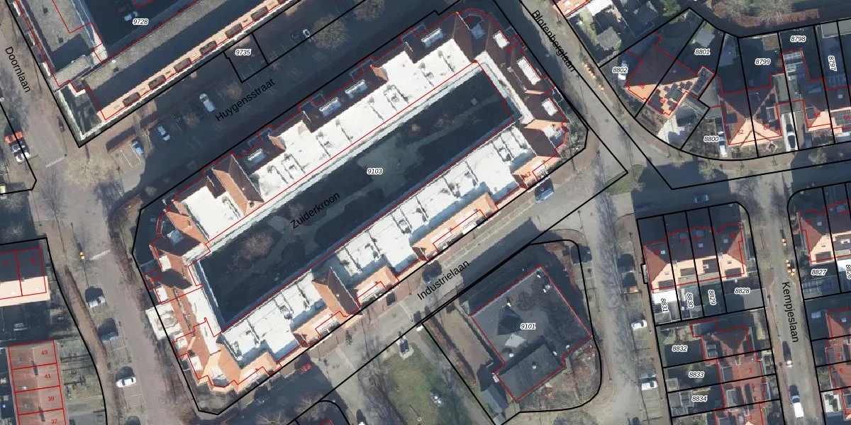 Het perceel waarop Zuiderkroon 52 staat heeft een oppervlakte van 5142 m². Dit is een zeer groot perceel. De perceeloppervlakte wordt geregistreerd door het Kadaster. Gedetailleerde informatie over de maten van dit perceel kunt u vinden in het rapport Kadastrale kaart met maatvoering van Zuiderkroon 52.