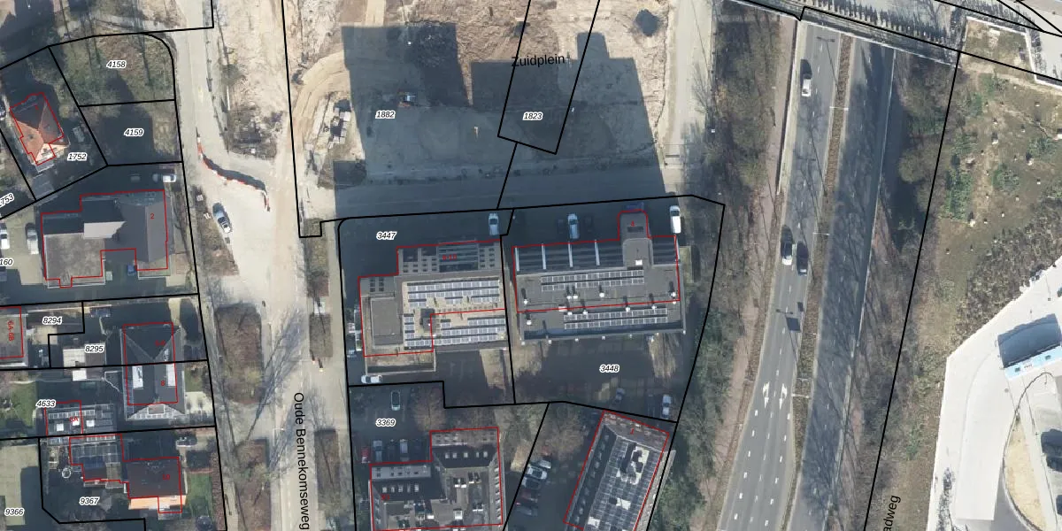 Het perceel waarop Zuidplein 104 staat heeft een oppervlakte van 1419 m². Dit is een zeer groot perceel. De perceeloppervlakte wordt geregistreerd door het Kadaster. Gedetailleerde informatie over de maten van dit perceel kunt u vinden in het rapport Kadastrale kaart met maatvoering van Zuidplein 104.