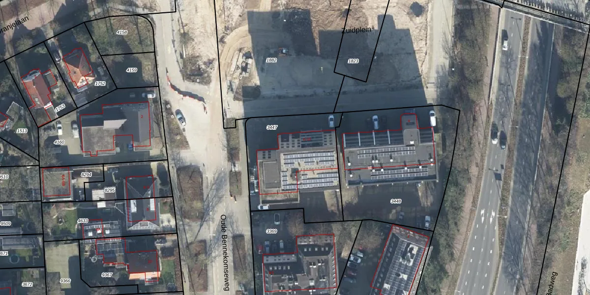 Het perceel waarop Zuidplein 42 staat heeft een oppervlakte van 1036 m². Dit is een zeer groot perceel. De perceeloppervlakte wordt geregistreerd door het Kadaster. Gedetailleerde informatie over de maten van dit perceel kunt u vinden in het rapport Kadastrale kaart met maatvoering van Zuidplein 42.