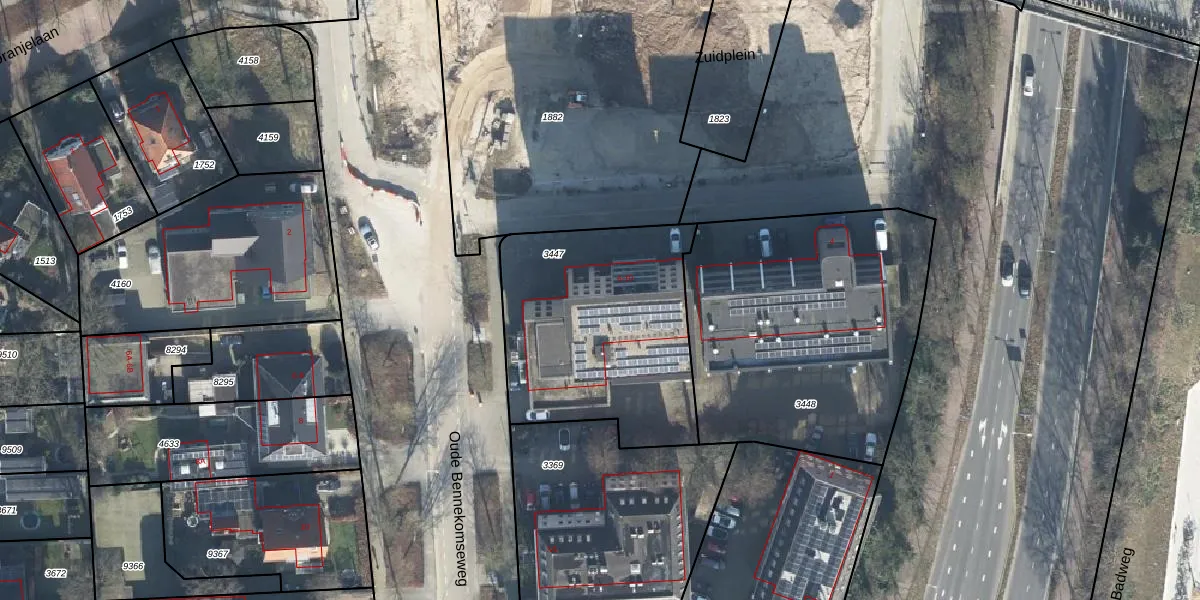 Het perceel waarop Zuidplein 48 staat heeft een oppervlakte van 1036 m². Dit is een zeer groot perceel. De perceeloppervlakte wordt geregistreerd door het Kadaster. Gedetailleerde informatie over de maten van dit perceel kunt u vinden in het rapport Kadastrale kaart met maatvoering van Zuidplein 48.