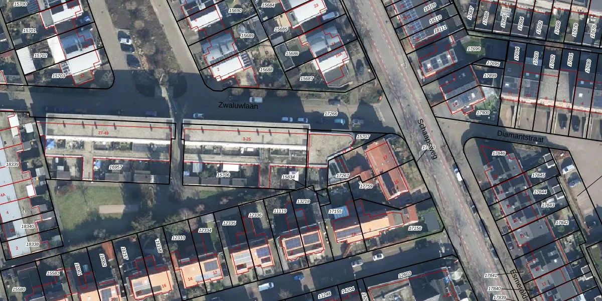 Zwaluwlaan 15 is gelegen op kadastraal perceel EDE01K15706. Deze kadastrale aanduiding is uniek en wordt gebruikt door het Kadaster om eigendomsrechten en andere zakelijke rechten vast te leggen. Het perceel maakt onderdeel uit van de kadastrale gemeente Ede.