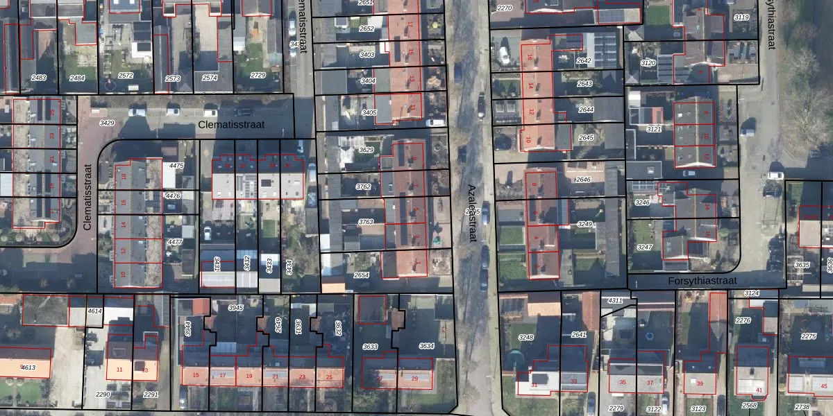Het perceel waarop Azaleastraat 5 staat heeft een oppervlakte van 402 m². Dit is een groot perceel. De perceeloppervlakte wordt geregistreerd door het Kadaster. Gedetailleerde informatie over de maten van dit perceel kunt u vinden in het rapport Kadastrale kaart met maatvoering van Azaleastraat 5.