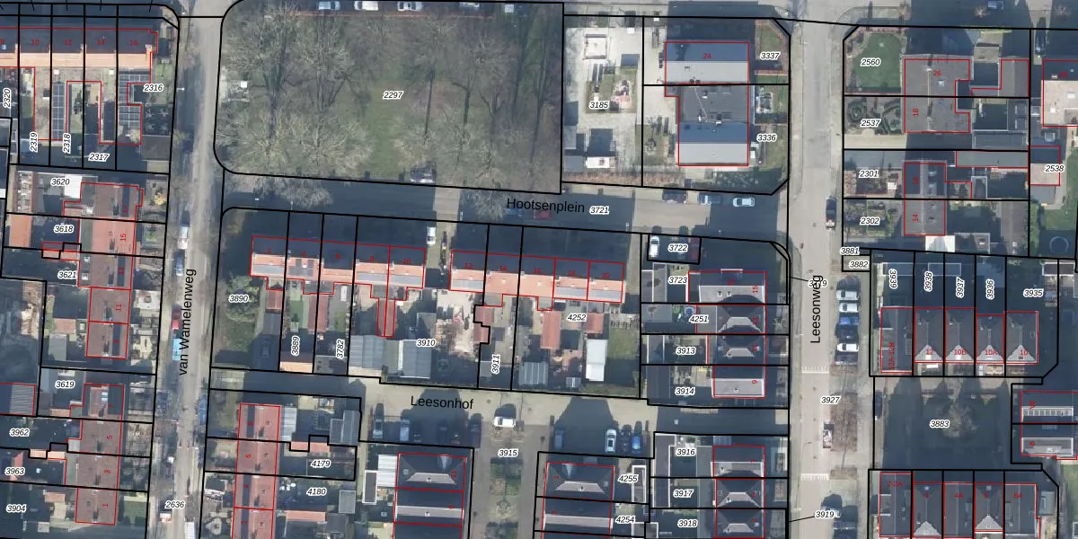 Het perceel waarop Hootsenplein 16 staat heeft een oppervlakte van 696 m². Dit is een groot perceel. De perceeloppervlakte wordt geregistreerd door het Kadaster. Gedetailleerde informatie over de maten van dit perceel kunt u vinden in het rapport Kadastrale kaart met maatvoering van Hootsenplein 16.