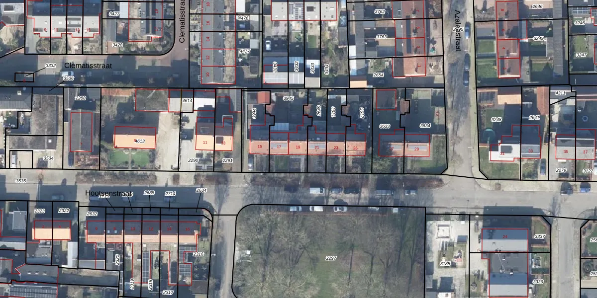 Het perceel waarop Hootsenstraat 19 staat heeft een oppervlakte van 365 m². Dit is een groot perceel. De perceeloppervlakte wordt geregistreerd door het Kadaster. Gedetailleerde informatie over de maten van dit perceel kunt u vinden in het rapport Kadastrale kaart met maatvoering van Hootsenstraat 19.