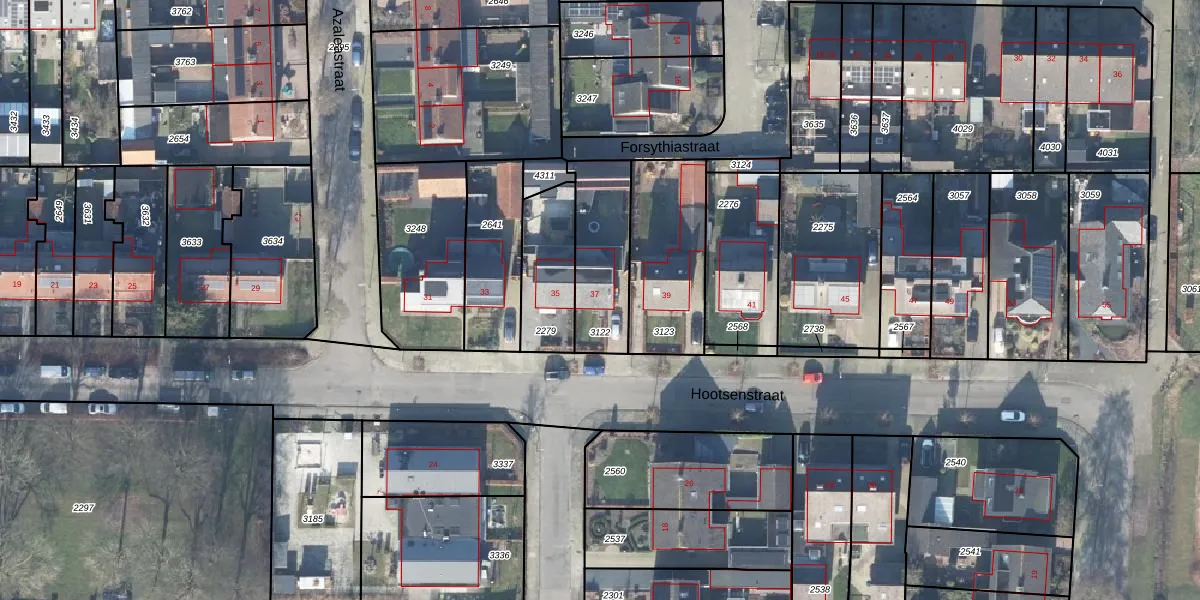 Gebruik de zoekbalk of klik op een perceel voor informatie over de adressen binnen dit perceel.