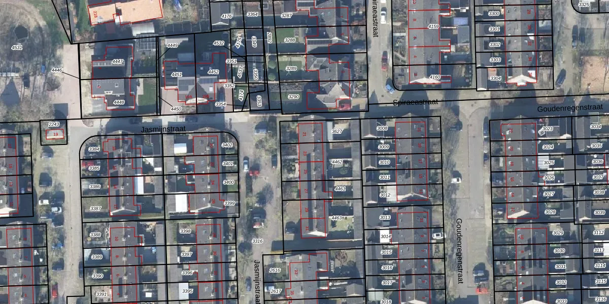 Het perceel waarop Jasmijnstraat 23 staat heeft een oppervlakte van 330 m². Dit is een groot perceel. De perceeloppervlakte wordt geregistreerd door het Kadaster. Gedetailleerde informatie over de maten van dit perceel kunt u vinden in het rapport Kadastrale kaart met maatvoering van Jasmijnstraat 23.