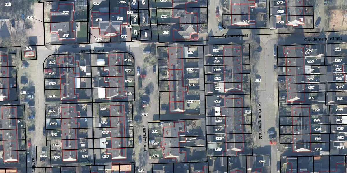 Het perceel waarop Jasmijnstraat 27 staat heeft een oppervlakte van 165 m². Dit is een middelgroot perceel. De perceeloppervlakte wordt geregistreerd door het Kadaster. Gedetailleerde informatie over de maten van dit perceel kunt u vinden in het rapport Kadastrale kaart met maatvoering van Jasmijnstraat 27.