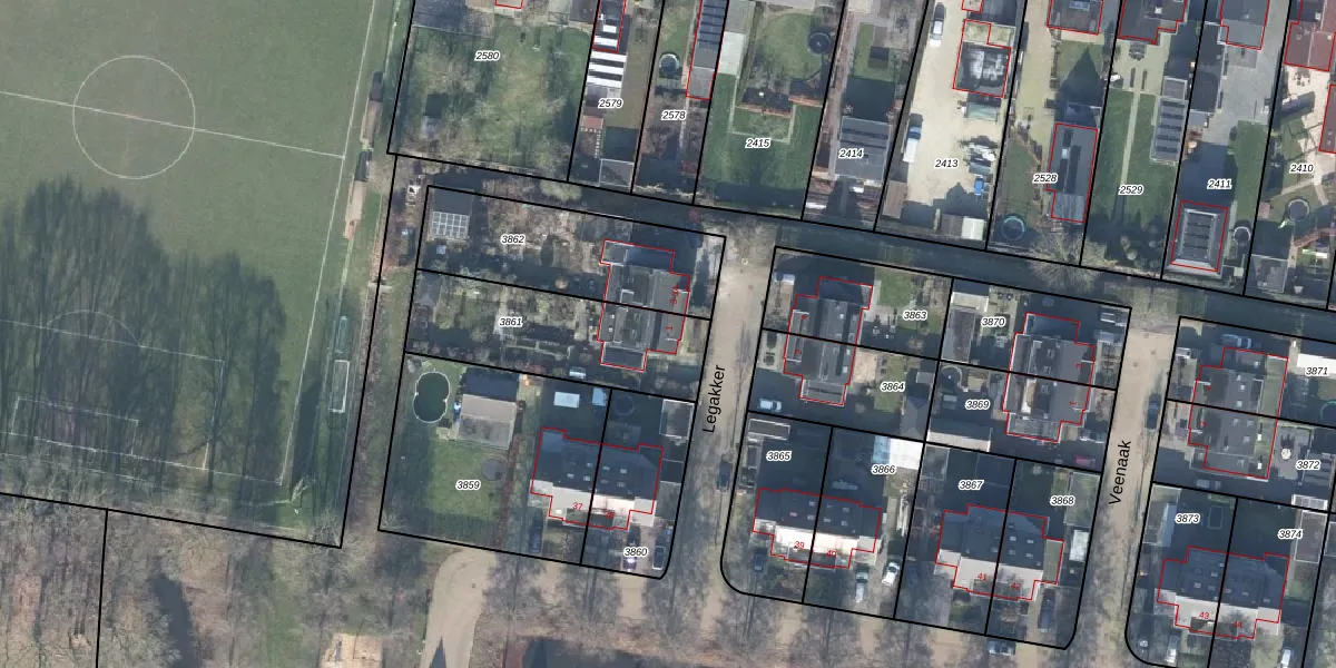 Het perceel waarop Legakker 1 staat heeft een oppervlakte van 561 m². Dit is een groot perceel. De perceeloppervlakte wordt geregistreerd door het Kadaster. Gedetailleerde informatie over de maten van dit perceel kunt u vinden in het rapport Kadastrale kaart met maatvoering van Legakker 1.