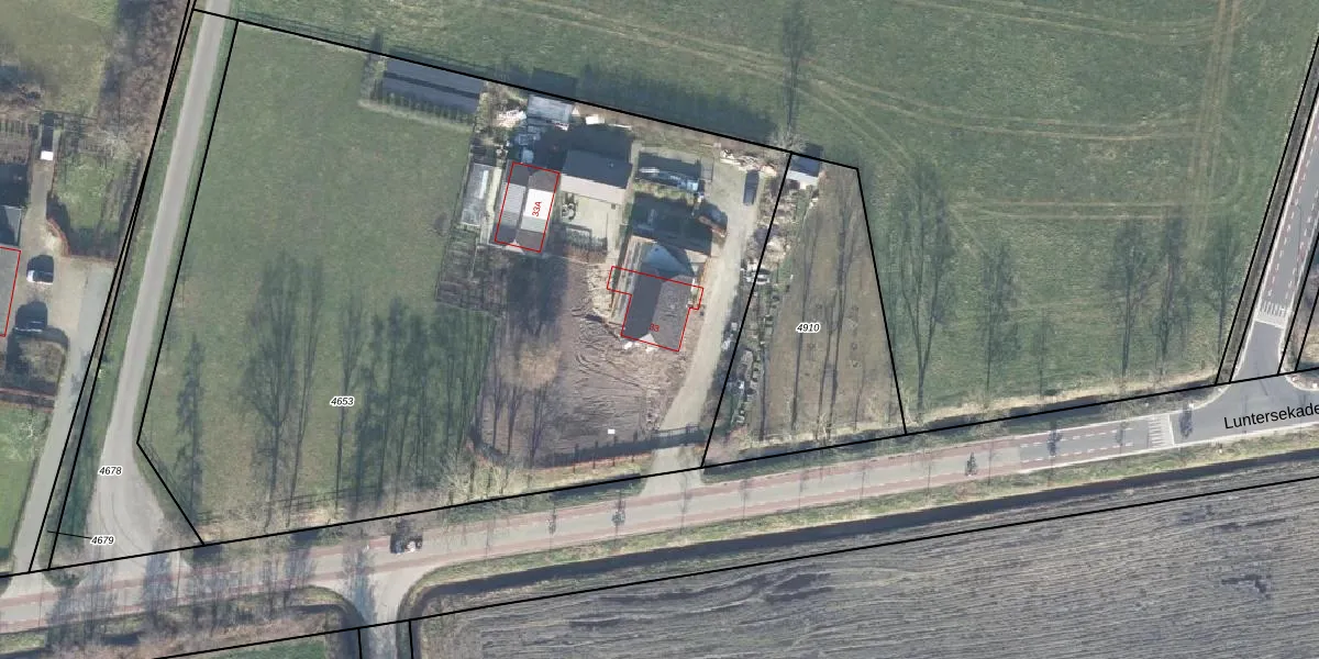 Luntersekade 33 is gelegen op kadastraal perceel LTR00C4653. Deze kadastrale aanduiding is uniek en wordt gebruikt door het Kadaster om eigendomsrechten en andere zakelijke rechten vast te leggen. Het perceel maakt onderdeel uit van de kadastrale gemeente Lunteren.