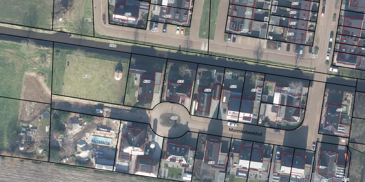 Het perceel waarop Munnikebeekhof 12 staat heeft een oppervlakte van 410 m². Dit is een groot perceel. De perceeloppervlakte wordt geregistreerd door het Kadaster. Gedetailleerde informatie over de maten van dit perceel kunt u vinden in het rapport Kadastrale kaart met maatvoering van Munnikebeekhof 12.