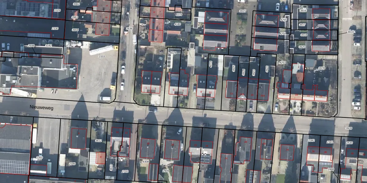Het perceel waarop Nieuweweg 7 staat heeft een oppervlakte van 2230 m². Dit is een zeer groot perceel. De perceeloppervlakte wordt geregistreerd door het Kadaster. Gedetailleerde informatie over de maten van dit perceel kunt u vinden in het rapport Kadastrale kaart met maatvoering van Nieuweweg 7.