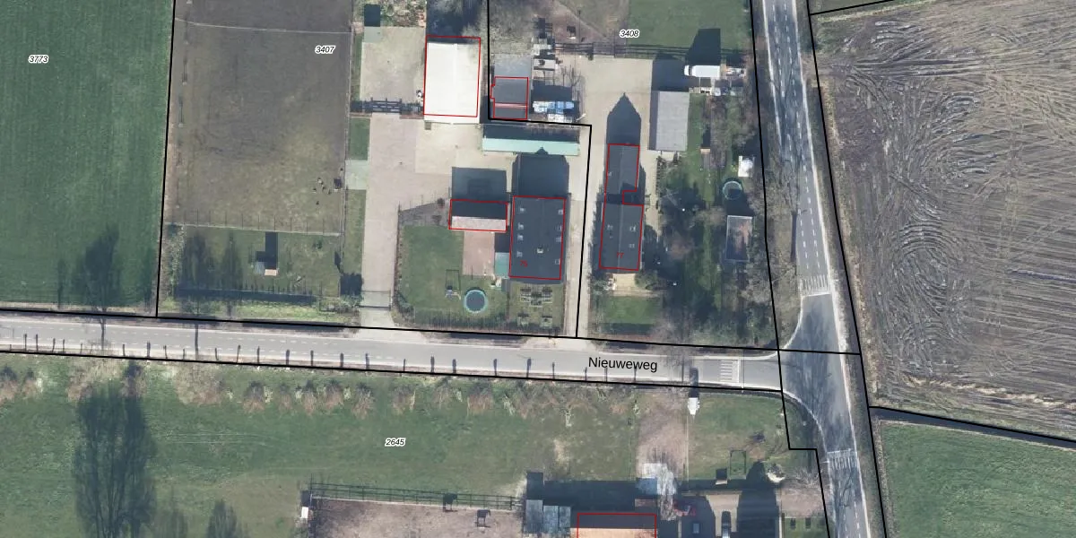 Het perceel waarop Nieuweweg 75 staat heeft een oppervlakte van 6365 m². Dit is een zeer groot perceel. De perceeloppervlakte wordt geregistreerd door het Kadaster. Gedetailleerde informatie over de maten van dit perceel kunt u vinden in het rapport Kadastrale kaart met maatvoering van Nieuweweg 75.