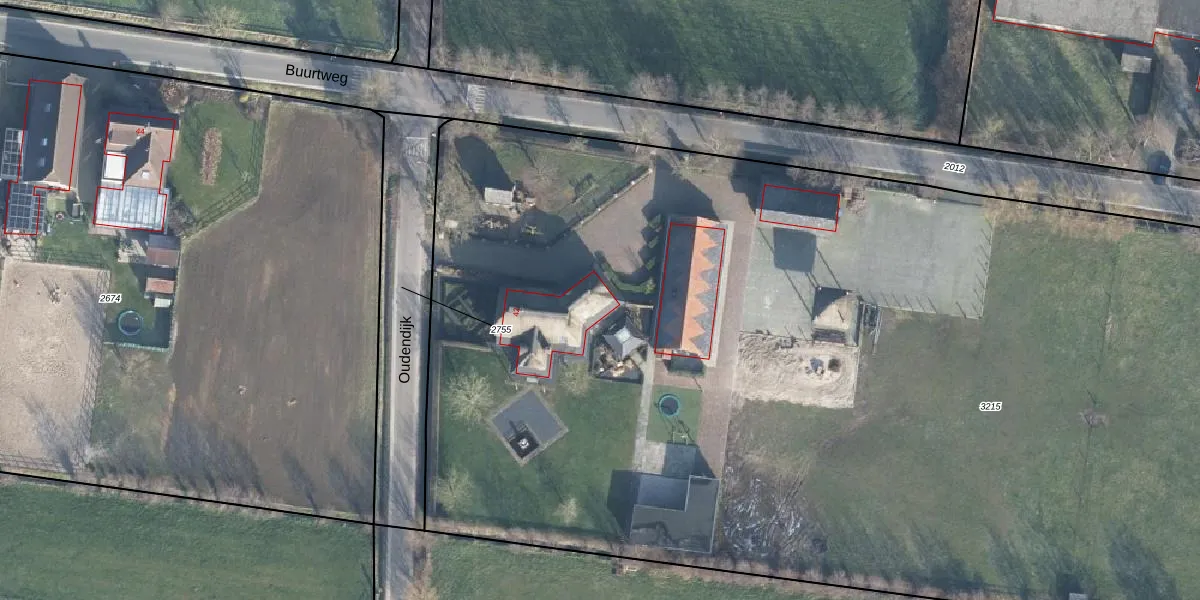 Het perceel waarop Oudendijk 42 staat heeft een oppervlakte van 1,2 ha. Dit is een zeer groot perceel. De perceeloppervlakte wordt geregistreerd door het Kadaster. Gedetailleerde informatie over de maten van dit perceel kunt u vinden in het rapport Kadastrale kaart met maatvoering van Oudendijk 42.