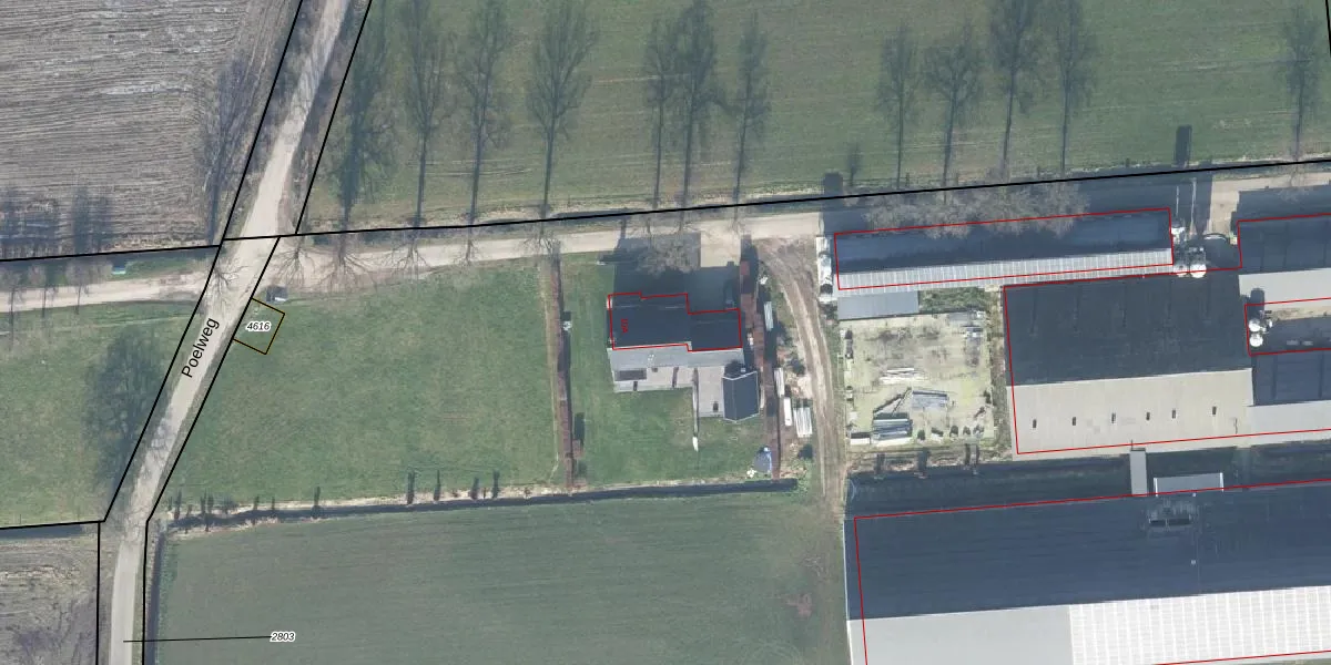 Het perceel waarop Poelweg 10-A staat heeft een oppervlakte van 6,9 ha. Dit is een zeer groot perceel. De perceeloppervlakte wordt geregistreerd door het Kadaster. Gedetailleerde informatie over de maten van dit perceel kunt u vinden in het rapport Kadastrale kaart met maatvoering van Poelweg 10-A.