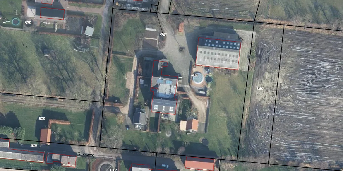 Het adres is gelegen op perceel 3323 in de sectie G en de kadastrale gemeente Ede. De kadastrale aanduiding is aldus EDE01-G-3323. Het perceel is met 6660 m² relatief groot. Het gemiddelde ligt in de kadastrale gemeente Ede op 2769,51 m². De grootste perceeloppervlakte in de kadastrale gemeente is 2,10 km². De kleinste oppervlakte bedraagt 0 m². Op het perceel zijn 4 adressen aanwezig. De laatste wijziging in het de Basisregistratie Kadaster (BRK) was op 27-03-2014.