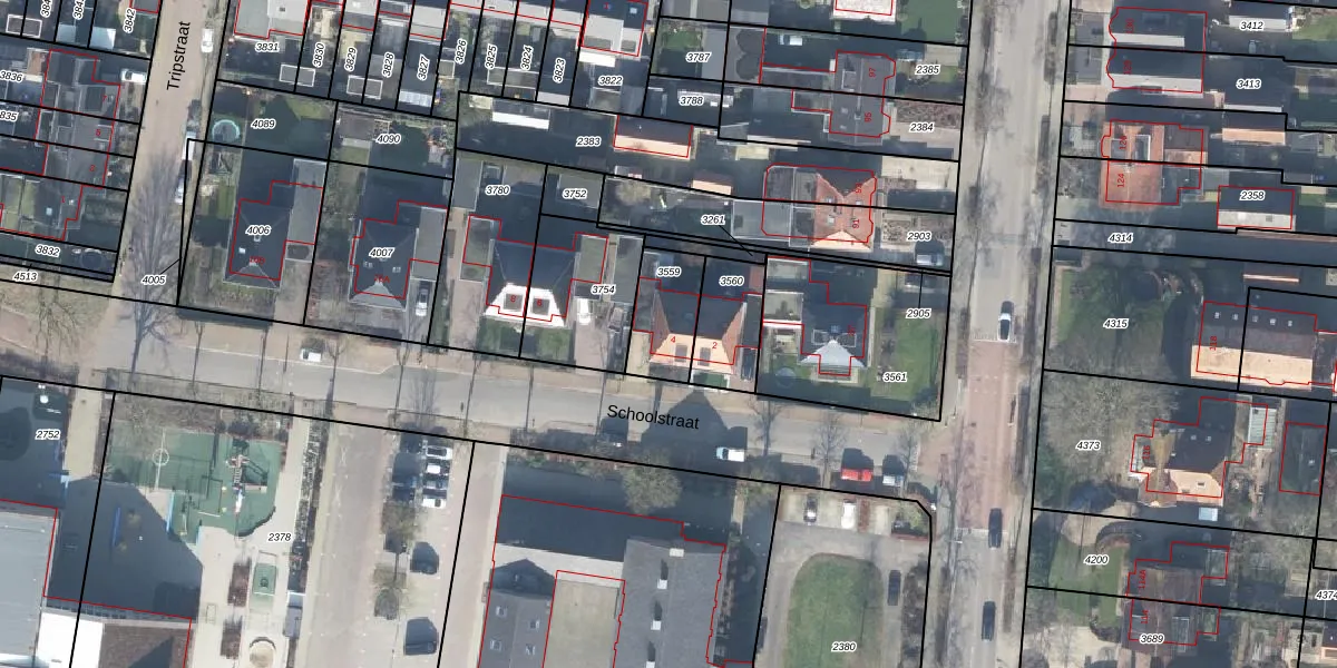Het perceel waarop Schoolstraat 4 staat heeft een oppervlakte van 187 m². Dit is een middelgroot perceel. De perceeloppervlakte wordt geregistreerd door het Kadaster. Gedetailleerde informatie over de maten van dit perceel kunt u vinden in het rapport Kadastrale kaart met maatvoering van Schoolstraat 4.