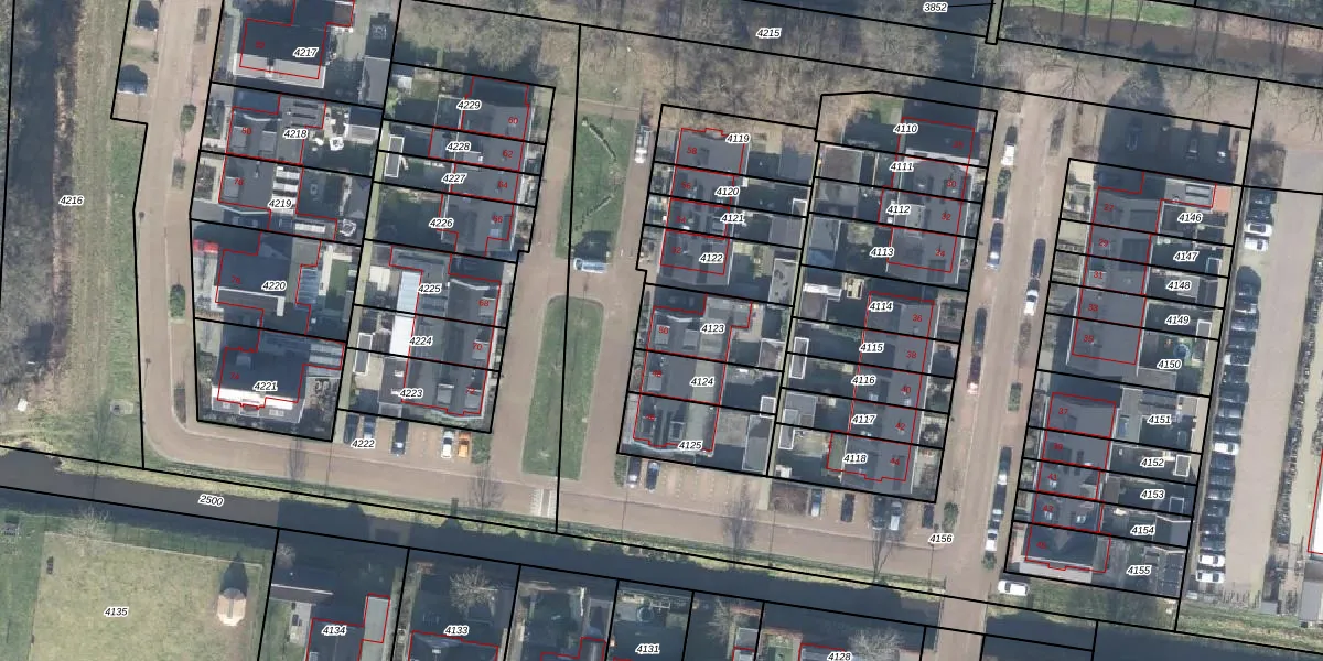Gebruik de zoekbalk of klik op een perceel voor informatie over de adressen binnen dit perceel.