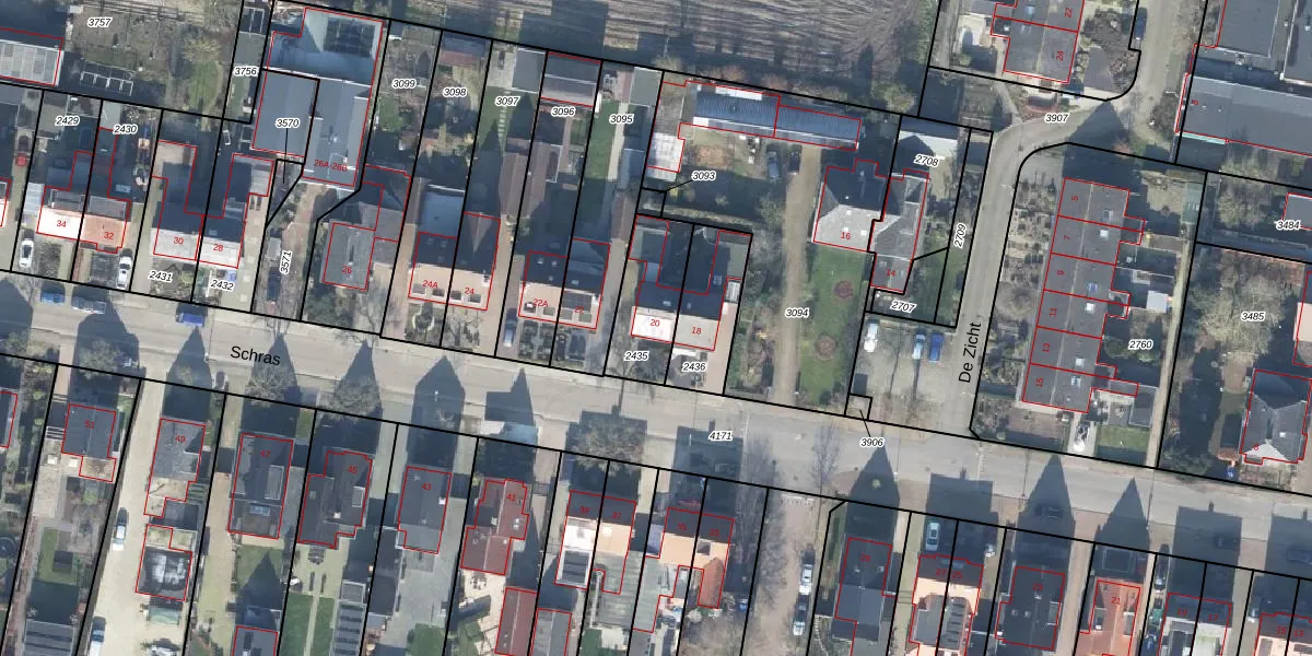 Gebruik de zoekbalk of klik op een perceel voor informatie over de adressen binnen dit perceel.