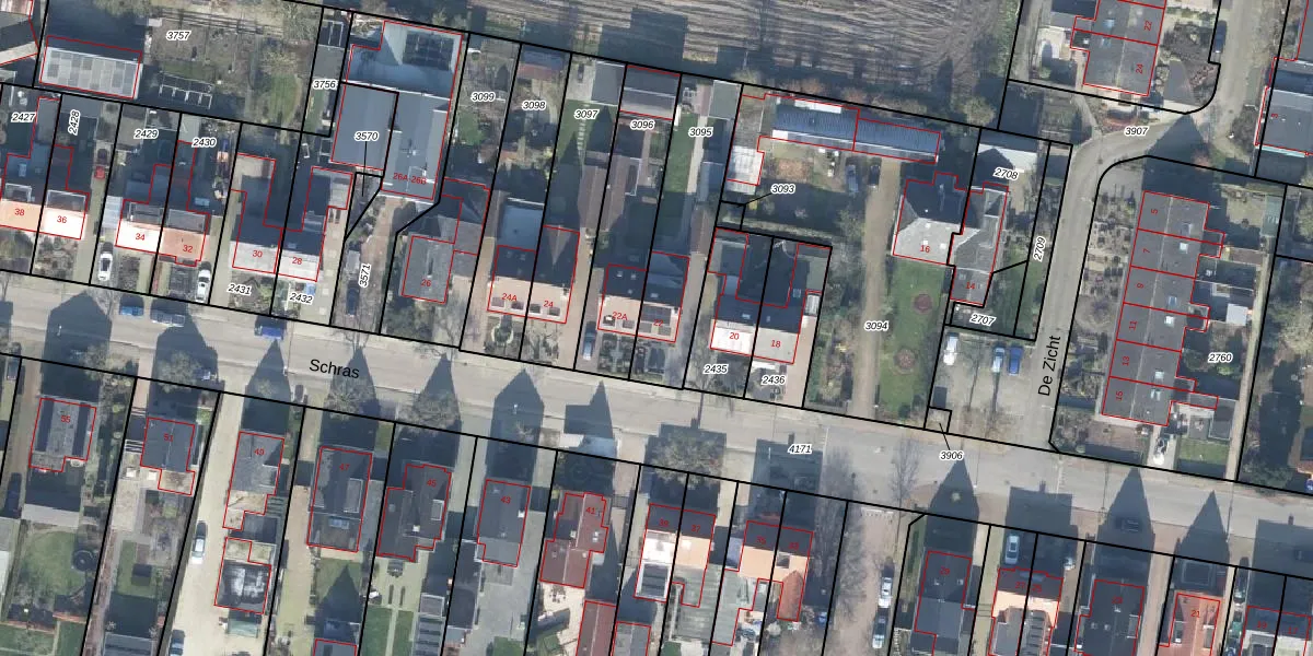Het perceel waarop Schras 22 staat heeft een oppervlakte van 425 m². Dit is een groot perceel. De perceeloppervlakte wordt geregistreerd door het Kadaster. Gedetailleerde informatie over de maten van dit perceel kunt u vinden in het rapport Kadastrale kaart met maatvoering van Schras 22.