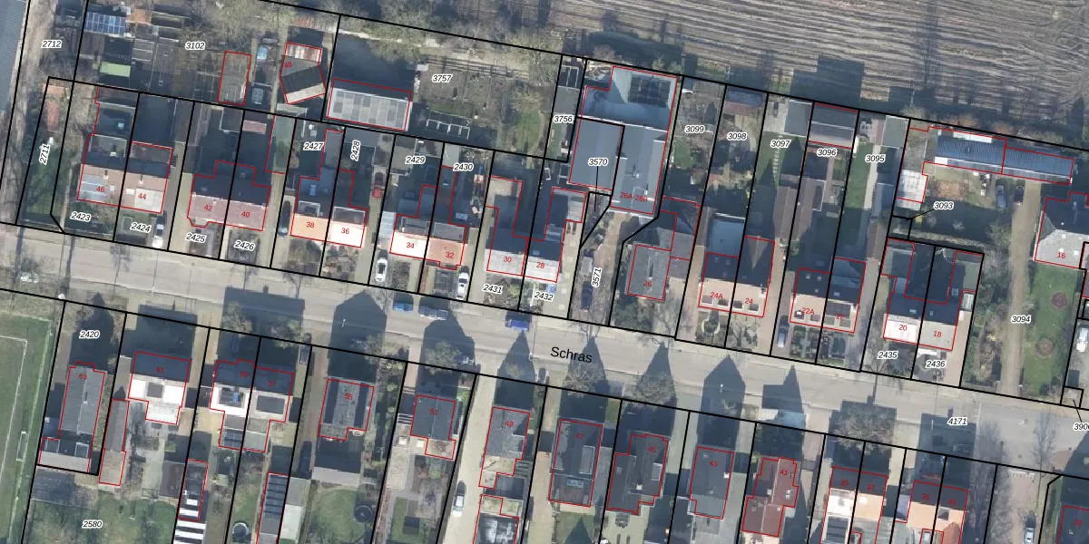 Het perceel waarop Schras 28 staat heeft een oppervlakte van 357 m². Dit is een groot perceel. De perceeloppervlakte wordt geregistreerd door het Kadaster. Gedetailleerde informatie over de maten van dit perceel kunt u vinden in het rapport Kadastrale kaart met maatvoering van Schras 28.