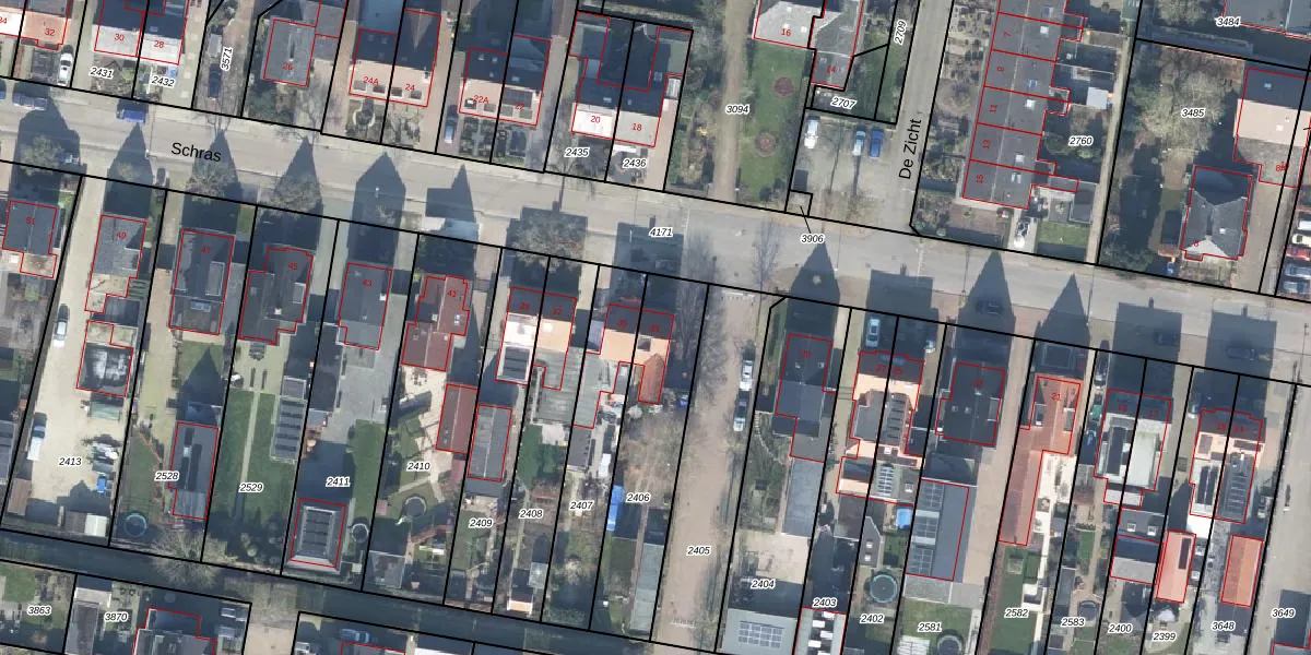 Gebruik de zoekbalk of klik op een perceel voor informatie over de adressen binnen dit perceel.
