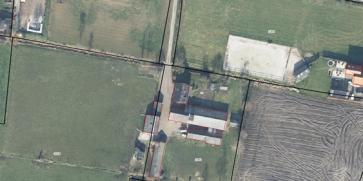Het perceel waarop Schras 83 staat heeft een oppervlakte van 2915 m². Dit is een zeer groot perceel. De perceeloppervlakte wordt geregistreerd door het Kadaster. Gedetailleerde informatie over de maten van dit perceel kunt u vinden in het rapport Kadastrale kaart met maatvoering van Schras 83.