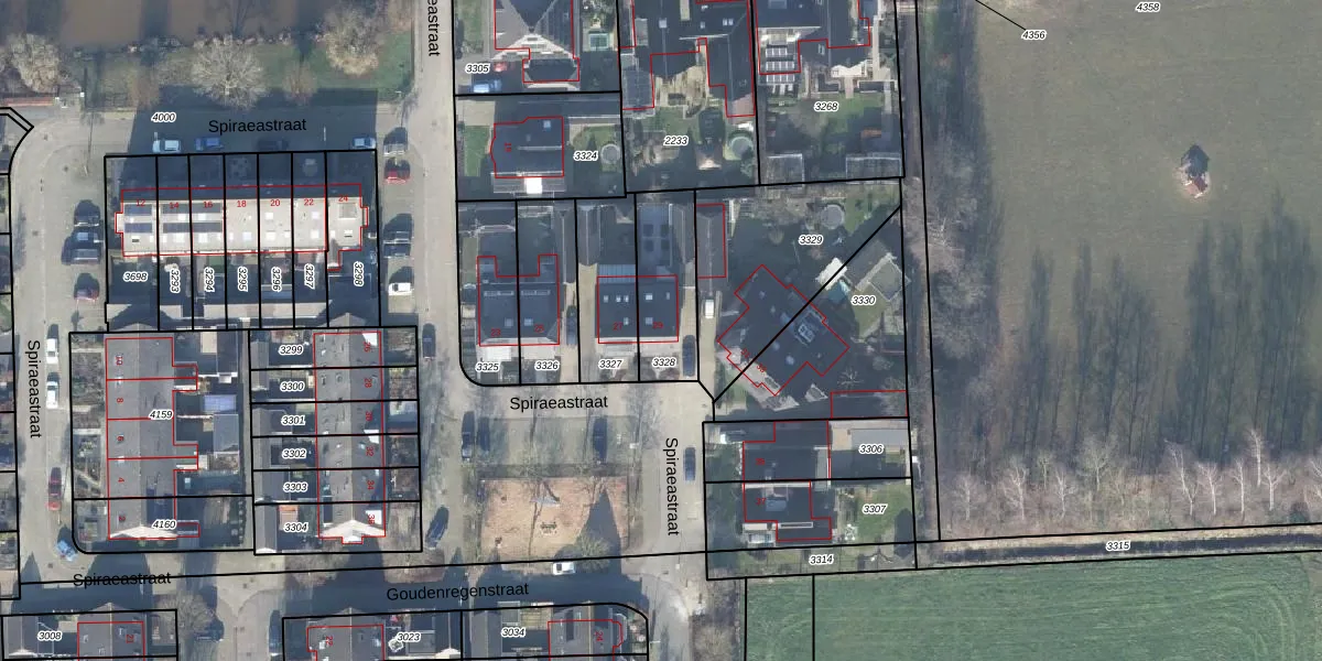 Spiraeastraat 29 is gelegen op kadastraal perceel EDE01H3328. Deze kadastrale aanduiding is uniek en wordt gebruikt door het Kadaster om eigendomsrechten en andere zakelijke rechten vast te leggen. Het perceel maakt onderdeel uit van de kadastrale gemeente Ede.